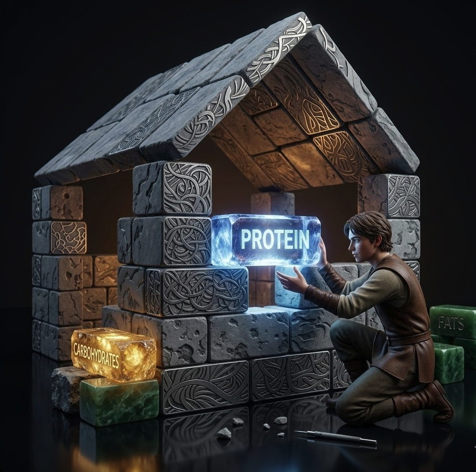 The right builders (Protein), the right fuel (Carbs), and the right regulators (Fat). Every meal is an act of conscious construction.